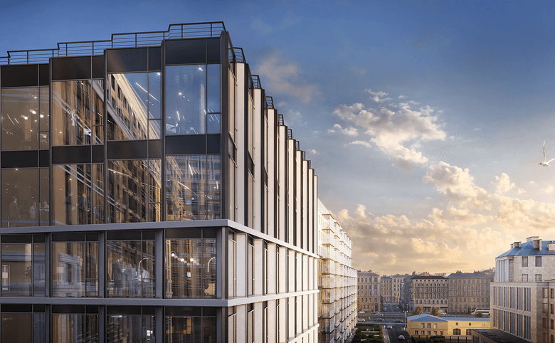 Бизнес-центр класса А+ представляет собой 8-этажное здание, возведенное по монолитной технологии строительства с фасадным остеклением. Дизайн фасада разработан архитектурной студией «Intercolumnium».