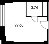 - S общая: 26.37 м2