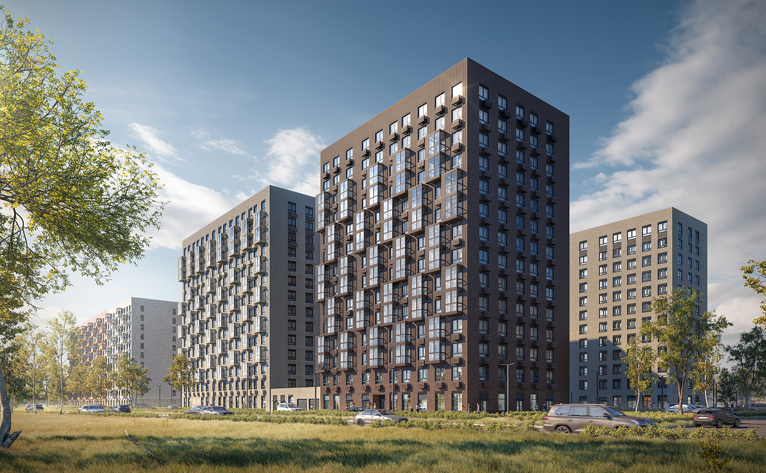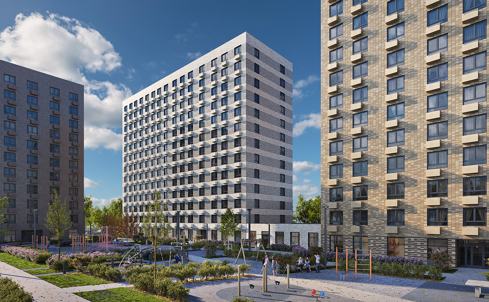В проекте предложено множество планировочных решений: от студий до трехкомнатных. Сдаются они с чистовой отделкой, увеличенными окнами и с высотой потолков 2,62 метров. В каждой квартире предусмотрены корзины под кондиционеры.