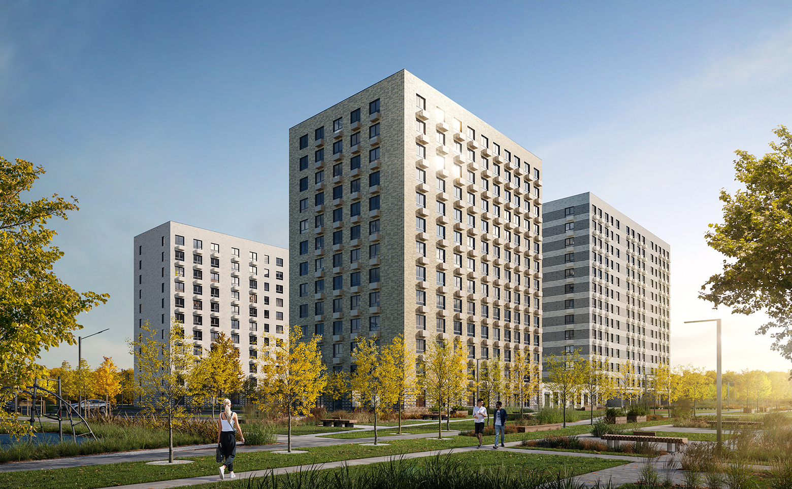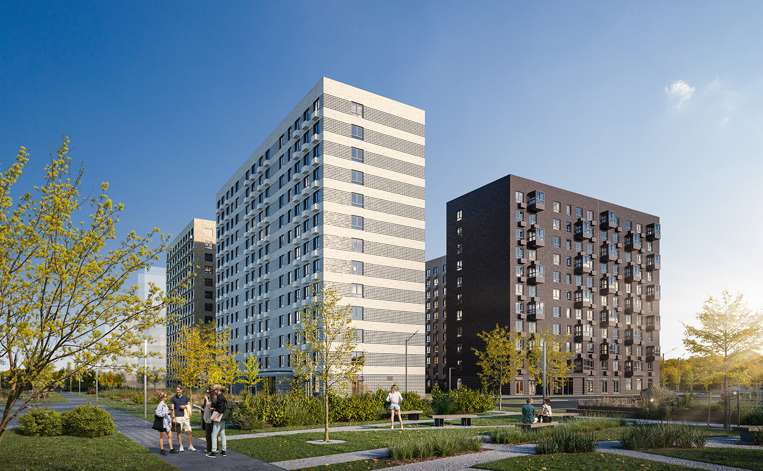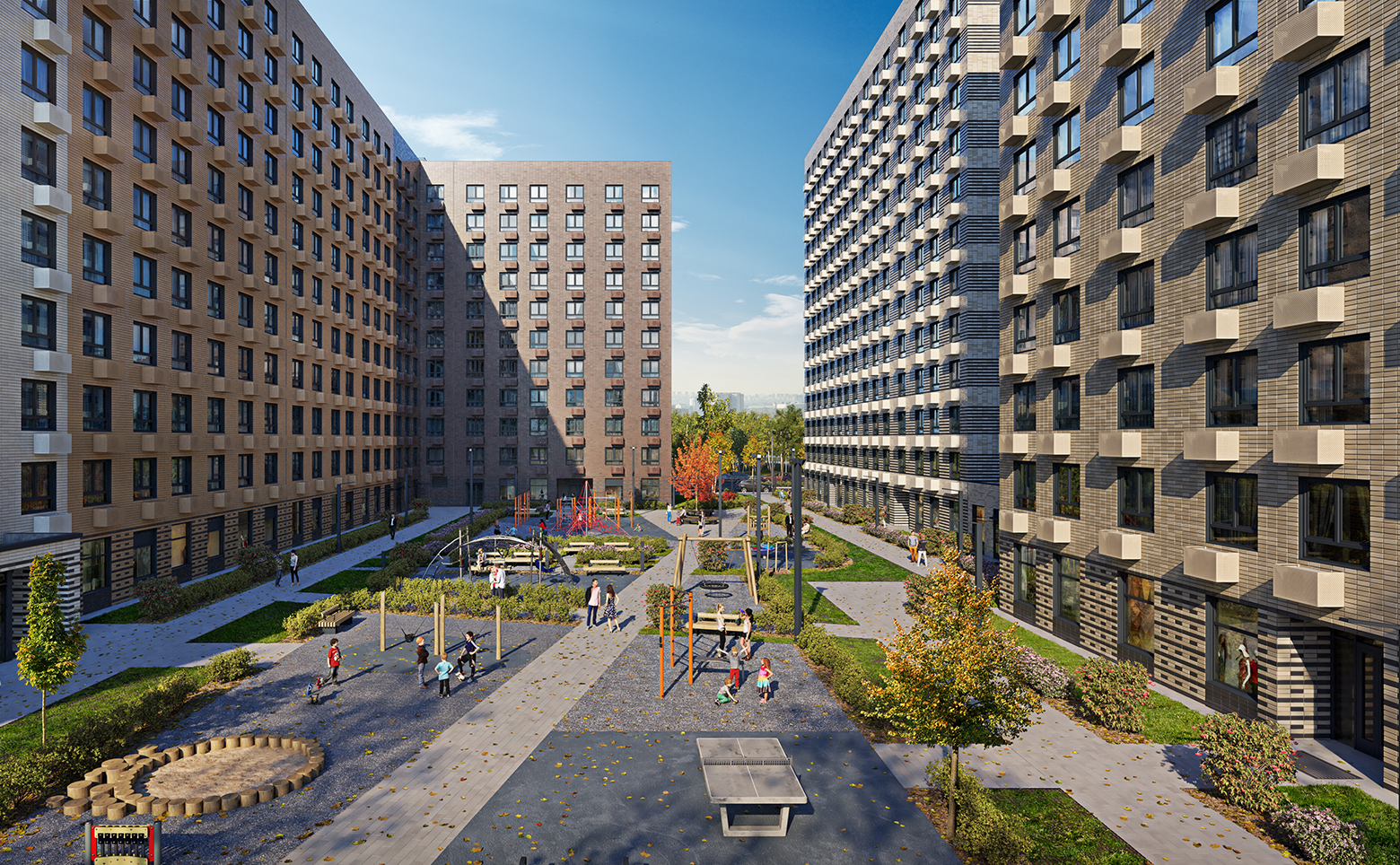В ЖК реализована концепция «двор-парк». Здесь расположены современные детские и спортивные площадки, организованы зоны отдыха. Через весь жилой район протянется широкий пешеходный бульвар для прогулок и спорта. На 1 этажах запроектированы коммерческие помещения, в подземной части корпусов — индивидуальные кладовые и паркинг. На территории комплекса находится 3 детских сада и школа.