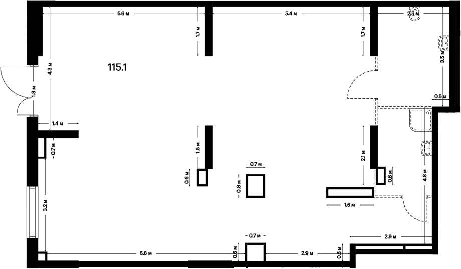 - S общая: 115.1 м2