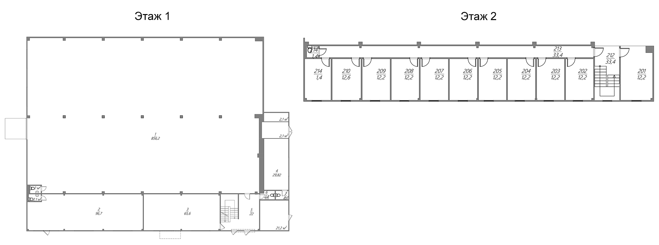 В зданиях выполнена чистовая отделка, предусмотрены наливные полы, освещение, пожарная сигнализация, гидранты, подъемно-секционные ворота на нулевом уровне, организован водоотвод и канализация. Возможна перепланировка помещений. В помещениях стандартные окна, общедомовая система вентиляции, выполнена разводка труб. Входная группа выделена, допускается установка вывески. Назначение помещений — складское, часть из них сдана в аренду.