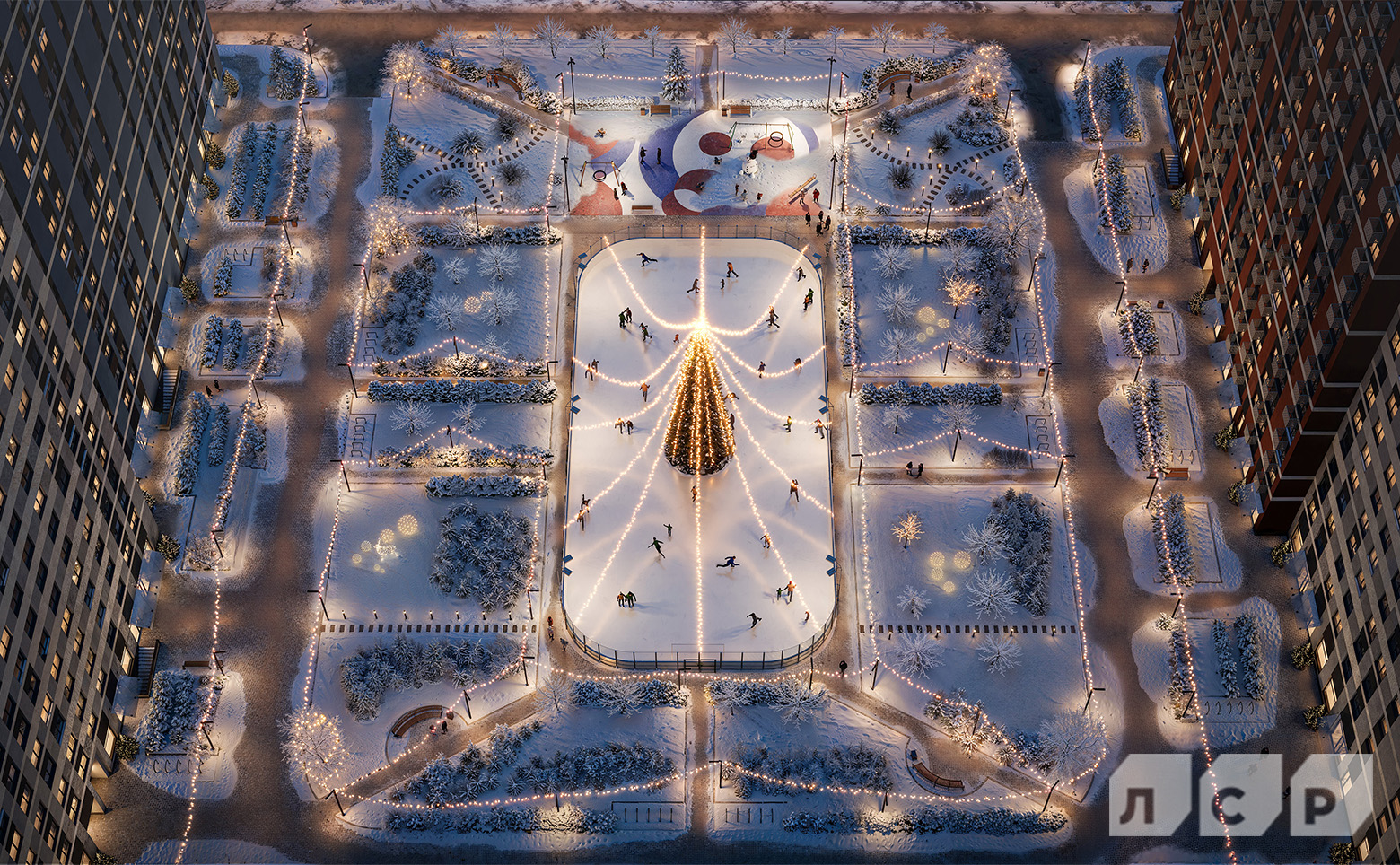 В состав комплекса входит школа на 825 мест и детский сад на 420 мест. На 1 этажах предусмотрены коммерческие помещения. Дворы закрыты от машин. На всей территории комплекса разработана безбарьерная среда. Спроектирован пешеходный бульвар с тенистыми аллеями, уютными лаунж-зонами, плей-хабами и активити-зонами. Высажены кустарники, деревья и многолетние растения.
