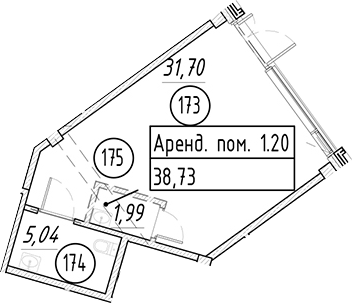 - S общая: 38.73 м2