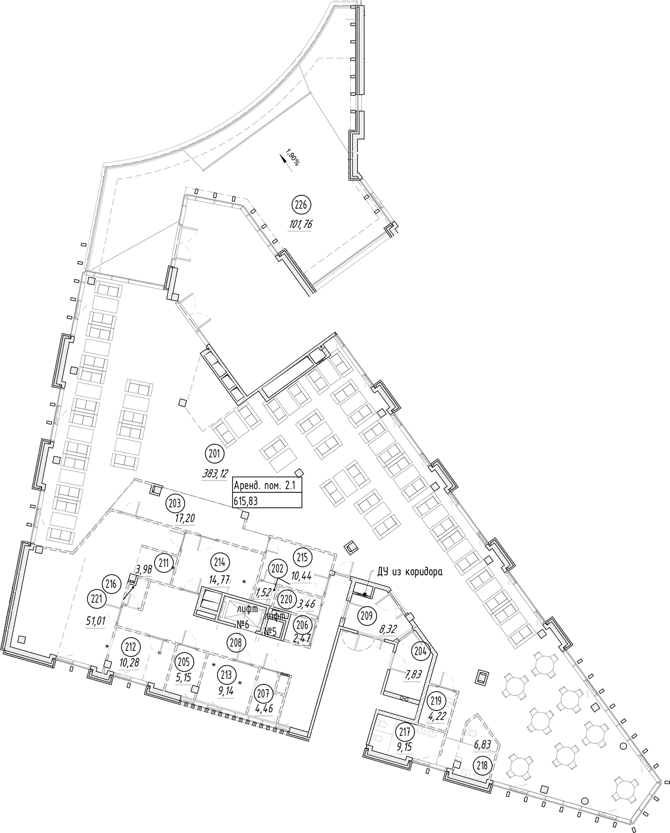 В проекте представлены коммерческие блоки торгового назначения с отдельными входами. Площадь объектов варьируется от 23,87 до 1 346,05 кв. м. Помещения передаются без отделки, с открывающимися окнами: на первом этаже витринные, на втором — увеличенные. Высота потолков составляет 4,8 м на первом этаже и 5,9 м на втором. Доступна перепланировка. Выполнена полная инженерная подготовка: разводка труб до помещений и общедомовая вентиляция.