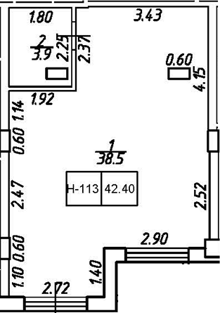 - S общая: 42.4 м2