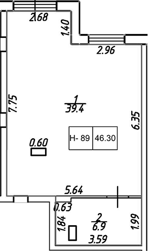 - S общая: 46.3 м2