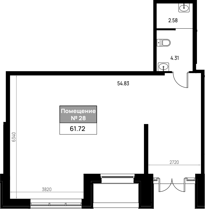 - S общая: 61.72 м2