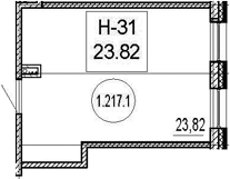 - S общая: 23.82 м2