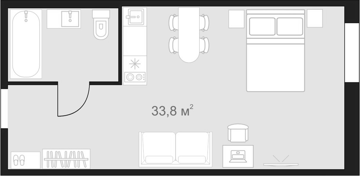 • S общая: 33.8 м2