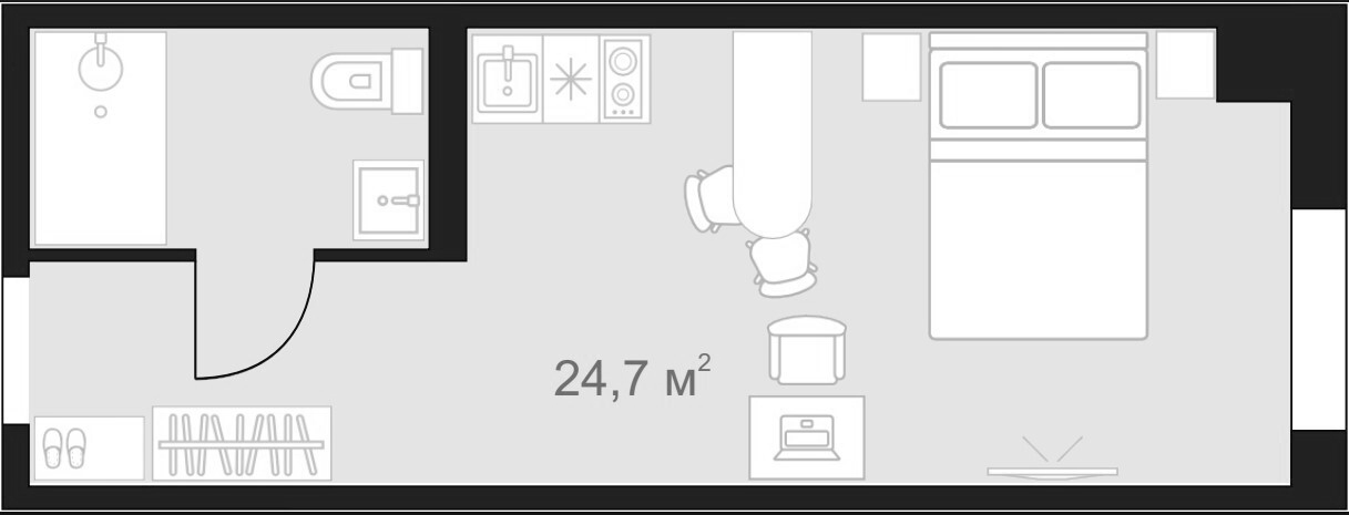 - S общая: 24.7 м2