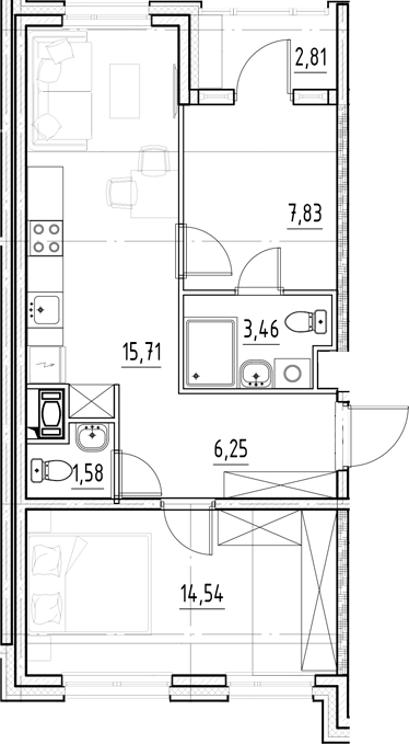 Цена за м2: 385 716₽- Отделка: Подчистовая