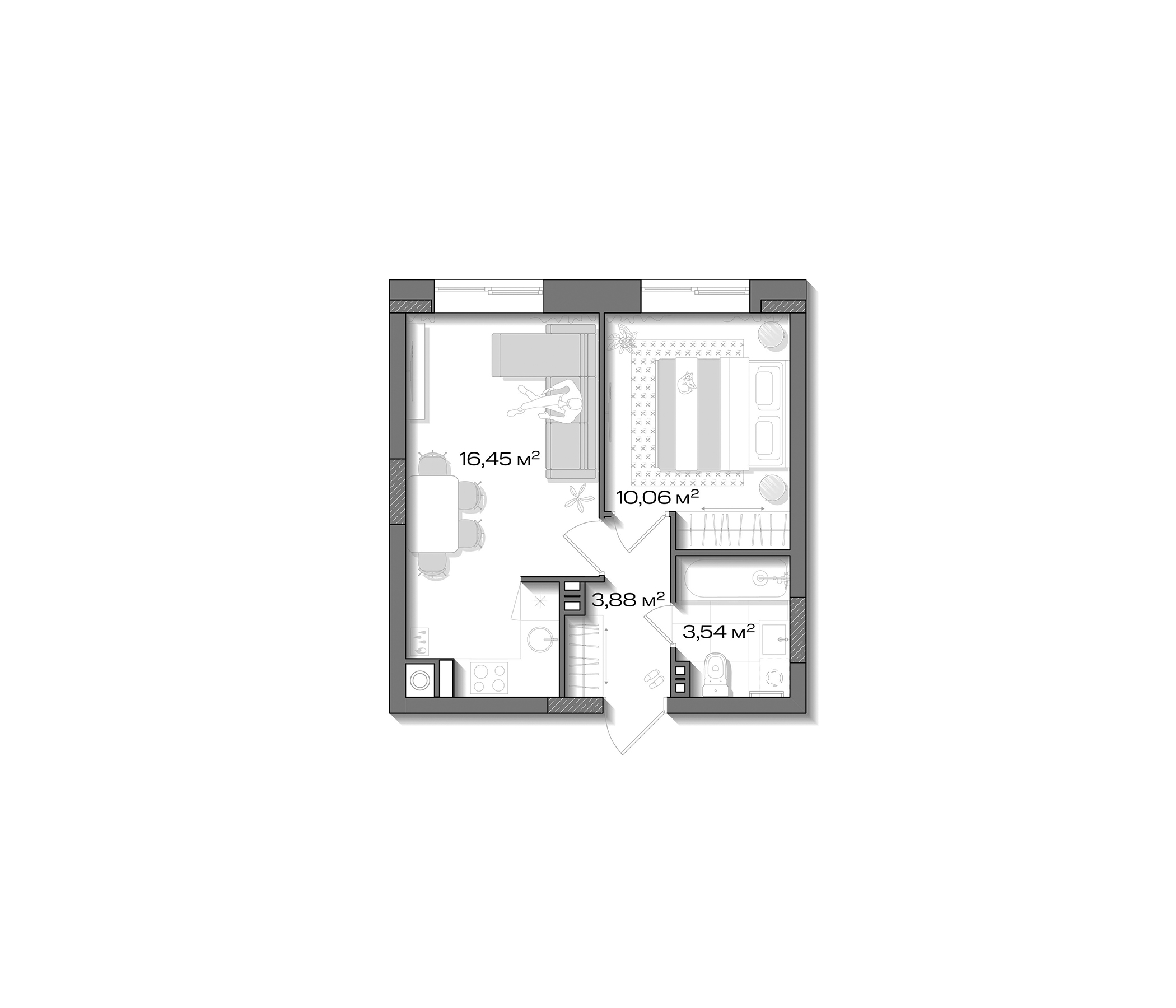 - S общая: 33.93 м2