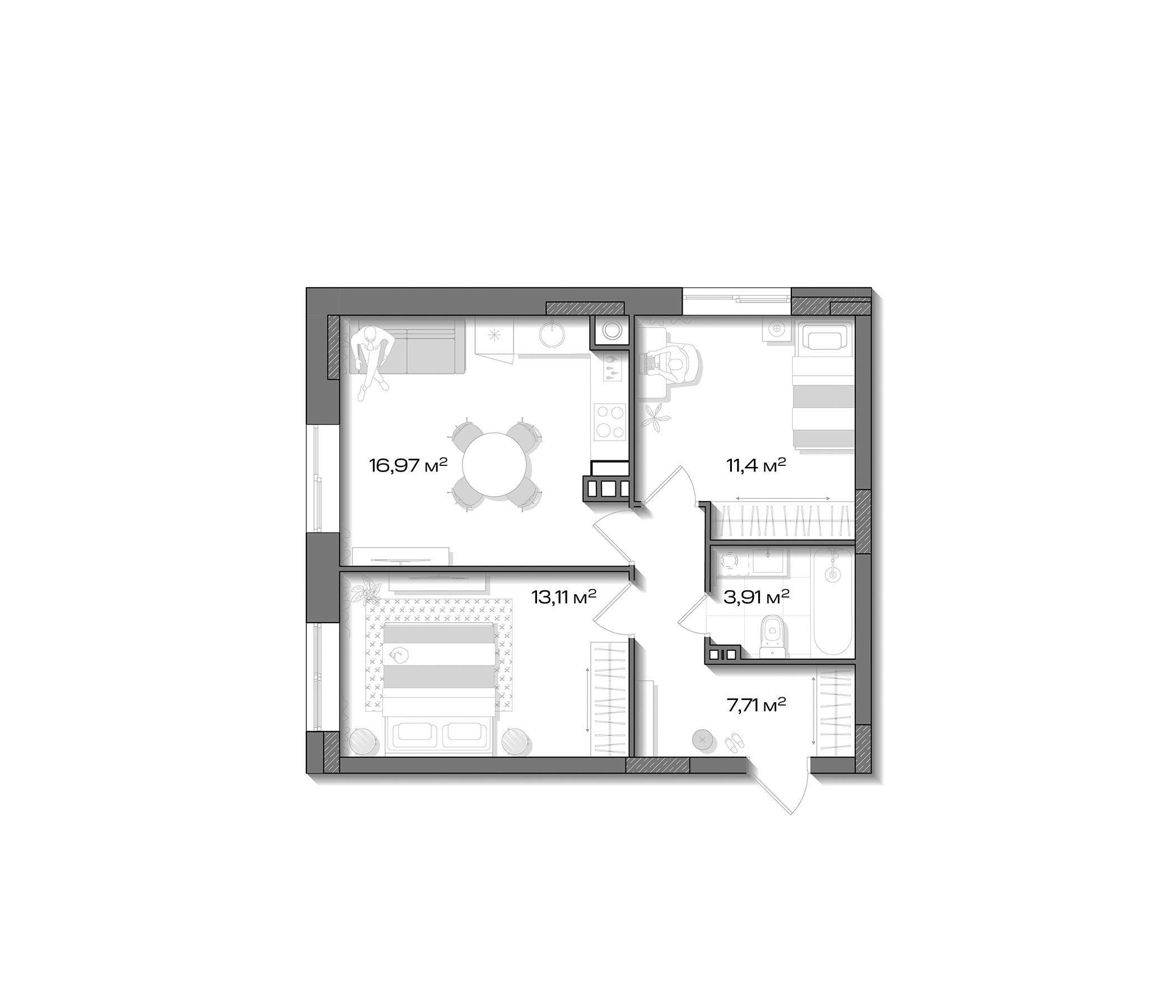 Цена за м2: 145 000₽- Отделка: Подчистовая
