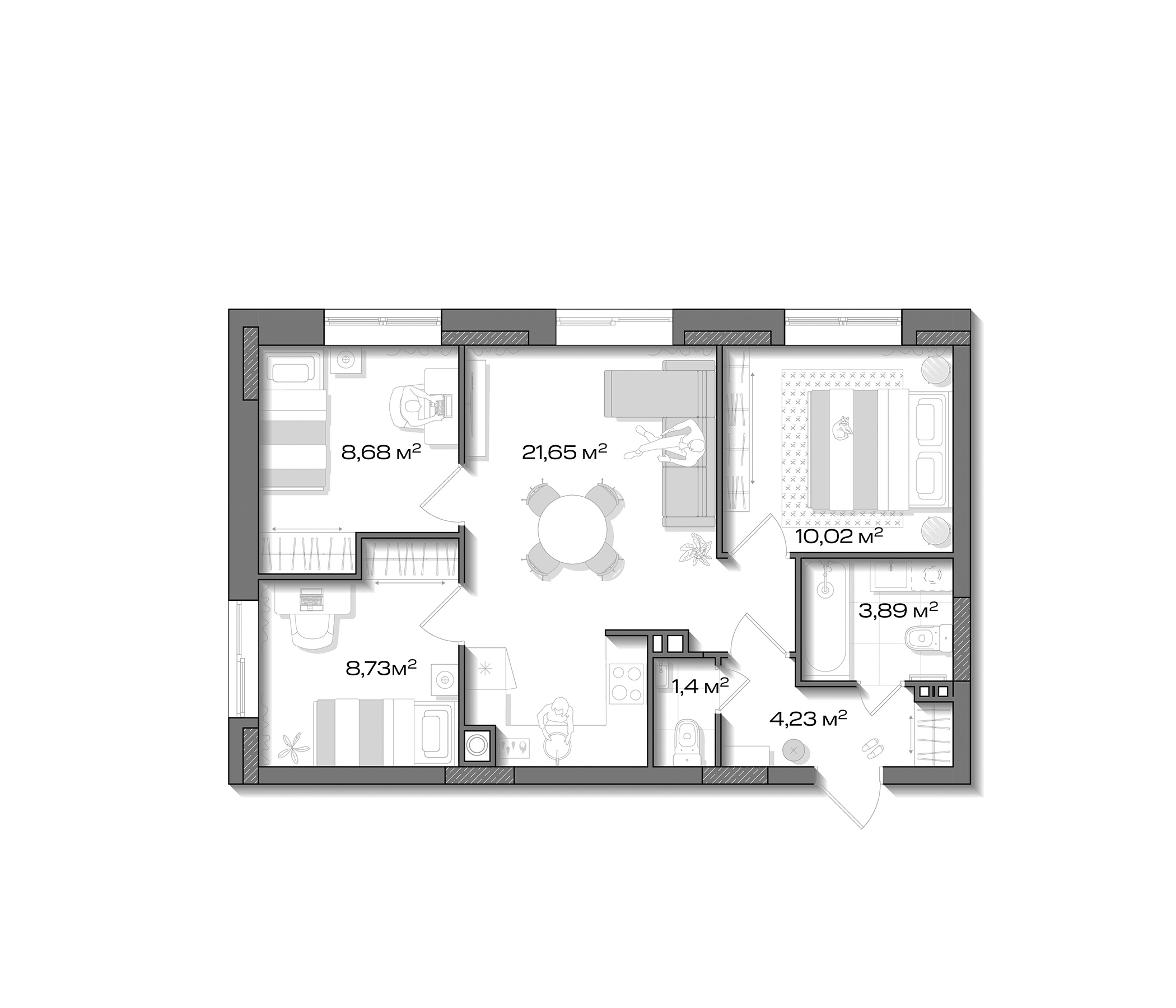 Цена за м2: 149 000₽- Отделка: Подчистовая
