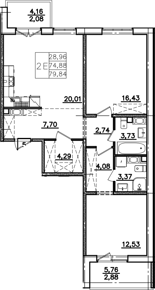 - S общая: 74.88 м2