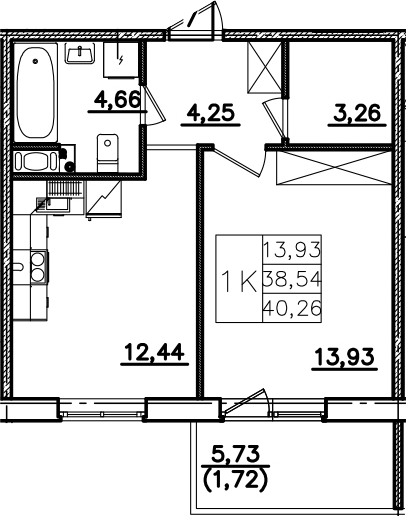 - Комнат: 1-к.кв