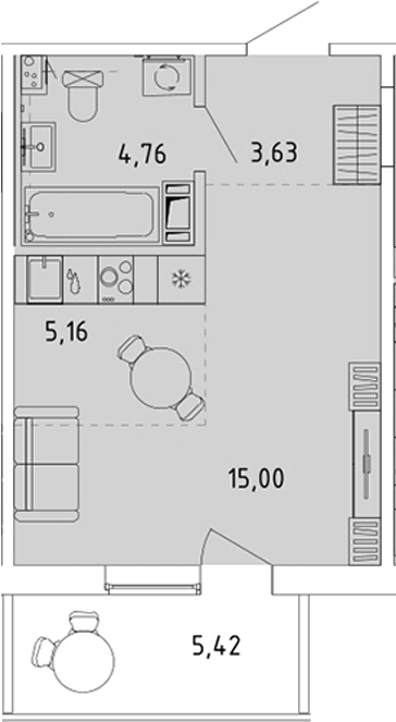 - Комнат: Студия