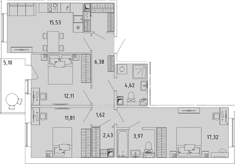 - Комнат: 4Е-к.кв