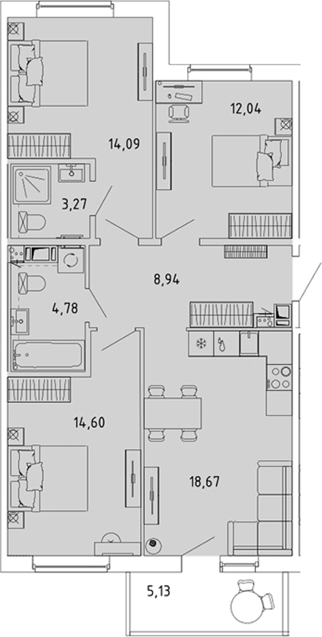 - Комнат: 4Е-к.кв
