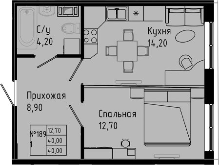 - S общая: 40 м2