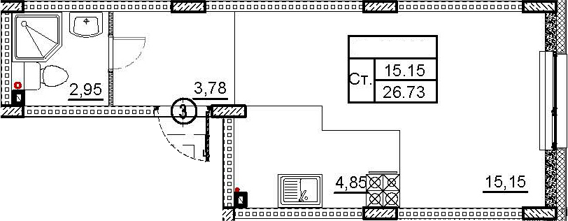 - Комнат: Студия