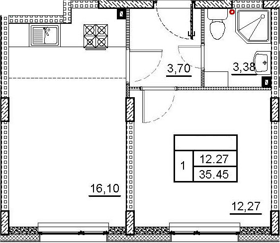 - S общая: 35.45 м2
