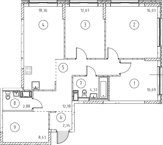 Квартиры представлены всеми видами планировок от студий до четырех и более комнат. Они передаются с чистовой отделкой, в которую входят установка металлических входных дверей, кафель в санузлах, линолеум и фактурные обои на стенах. Благодаря этому клиенты могут въехать в новый дом как можно быстрее после покупки.