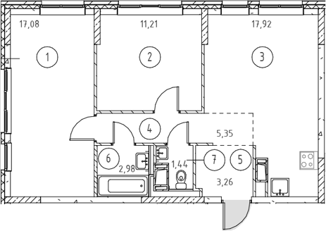- Комнат: 3Е-к.кв