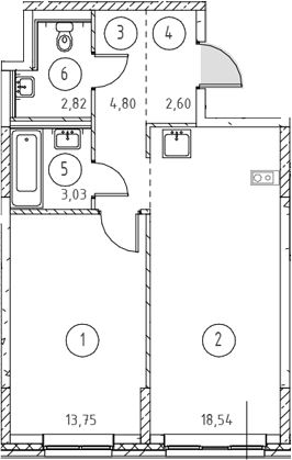 - S общая: 45.54 м2