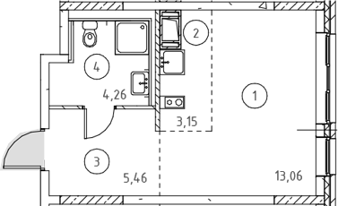 - Комнат: Студия