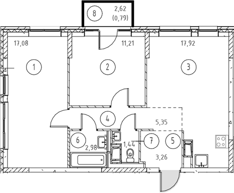 Квартиры представлены всеми видами планировок от студий до четырех и более комнат. Они передаются с чистовой отделкой, в которую входят установка металлических входных дверей, кафель в санузлах, линолеум и фактурные обои на стенах. Благодаря этому клиенты могут въехать в новый дом как можно быстрее после покупки.