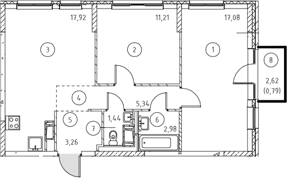 Квартиры представлены всеми видами планировок от студий до четырех и более комнат. Они передаются с чистовой отделкой, в которую входят установка металлических входных дверей, кафель в санузлах, линолеум и фактурные обои на стенах. Благодаря этому клиенты могут въехать в новый дом как можно быстрее после покупки.