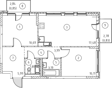 Квартиры представлены всеми видами планировок от студий до четырех и более комнат. Они передаются с чистовой отделкой, в которую входят установка металлических входных дверей, кафель в санузлах, линолеум и фактурные обои на стенах. Благодаря этому клиенты могут въехать в новый дом как можно быстрее после покупки.