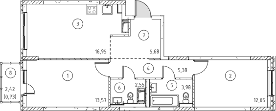 - Комнат: 3Е-к.кв