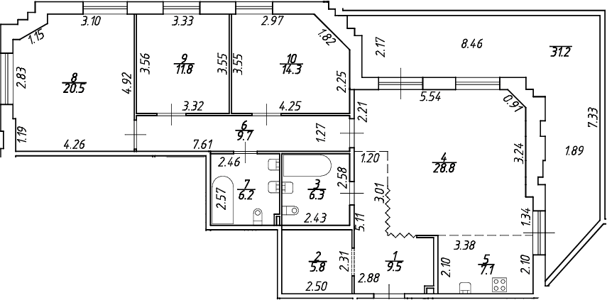 Цена за м2: 332 389₽- Отделка: Без отделки