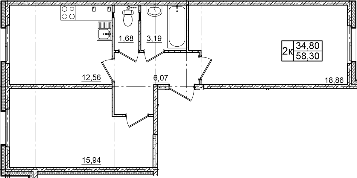 - Комнат: 2-к.кв