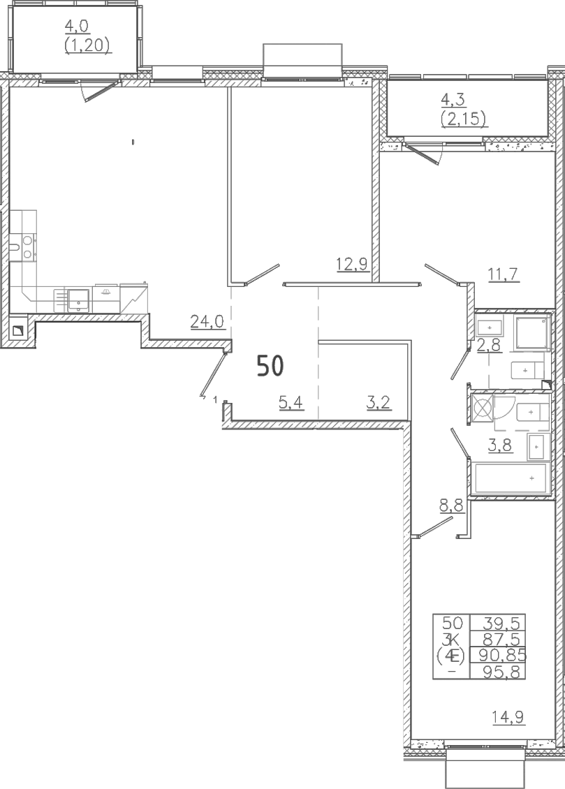 - Комнат: 4Е-к.кв