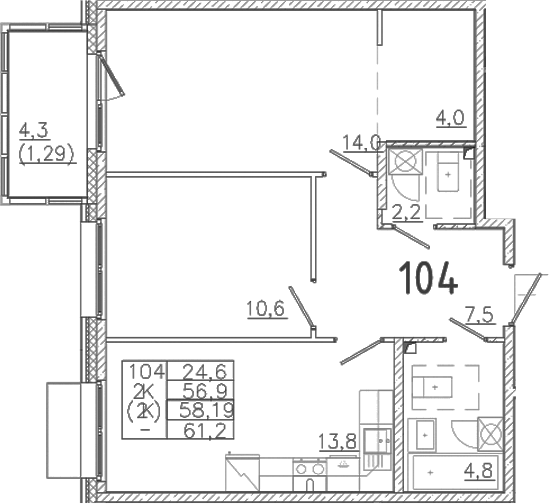 Цена за м2: 327 504₽- Отделка: Подчистовая