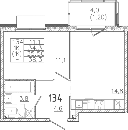 - Комнат: 1-к.кв