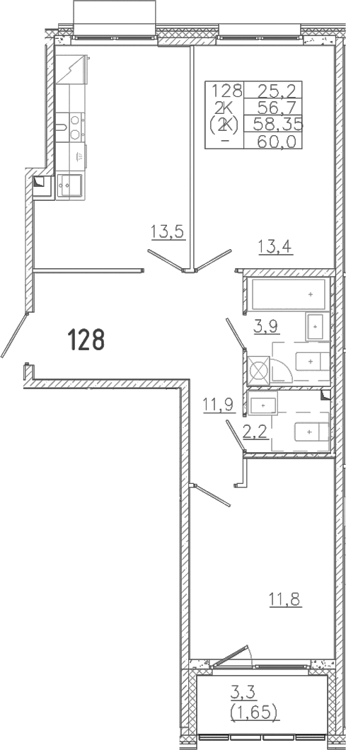 - Комнат: 2-к.кв