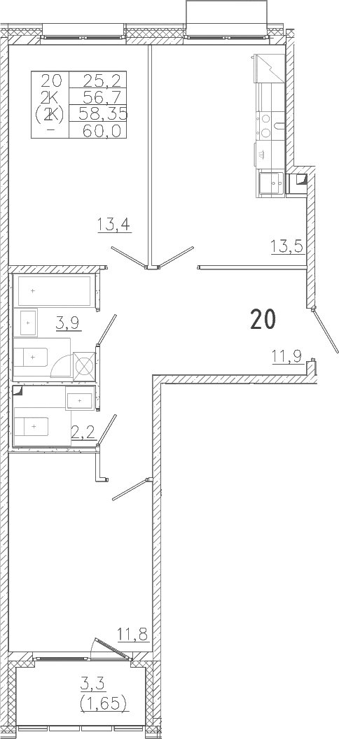 - Комнат: 2-к.кв