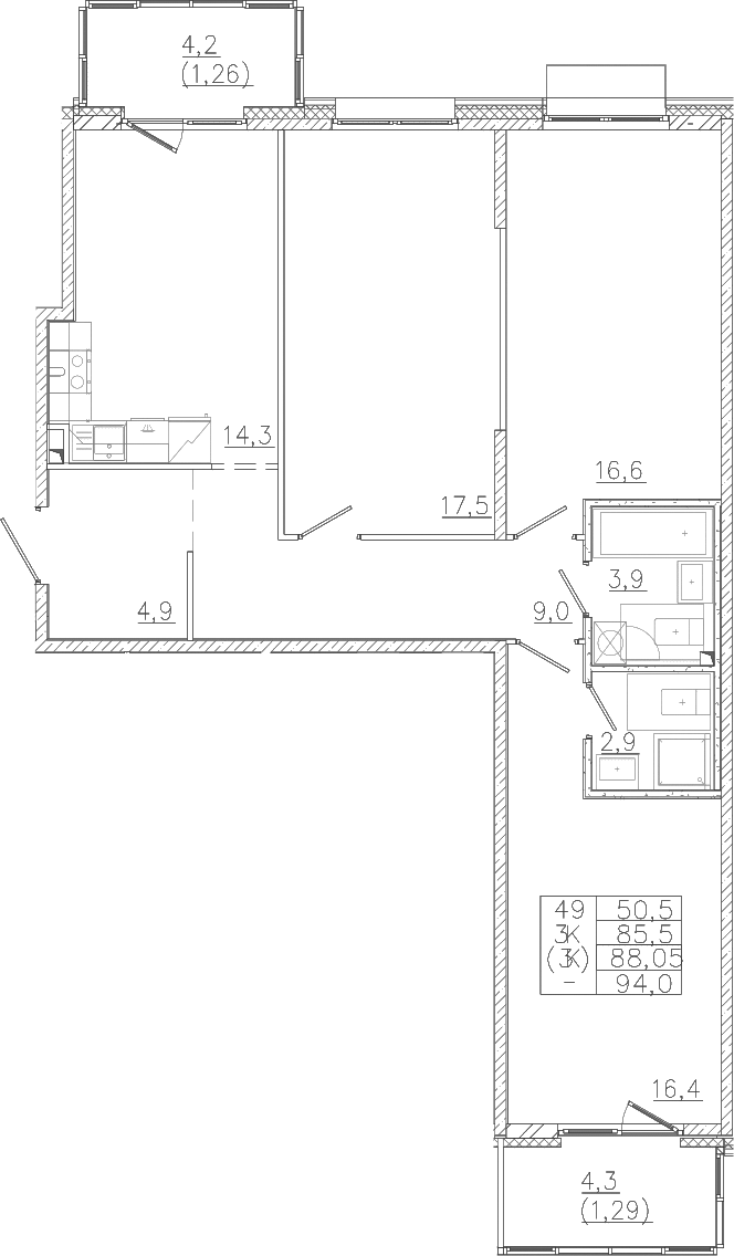 - Комнат: 3-к.кв