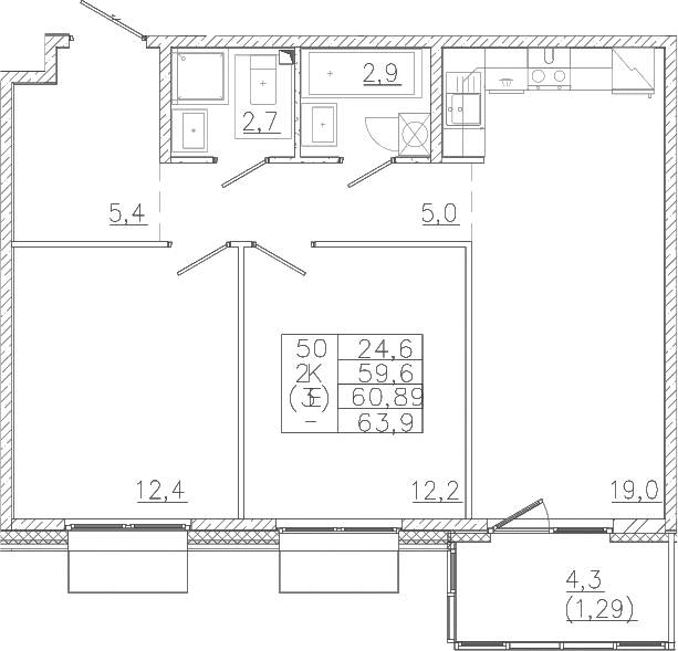 - Комнат: 3Е-к.кв