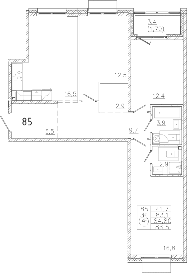 - S общая: 83.1 м2