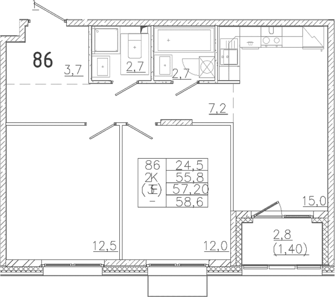 - S общая: 55.8 м2