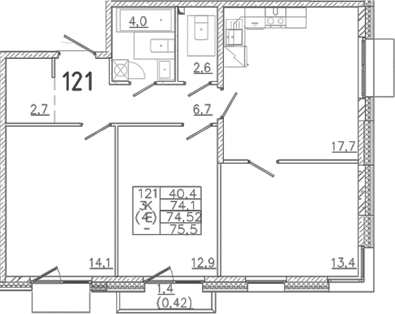 - Комнат: 4Е-к.кв