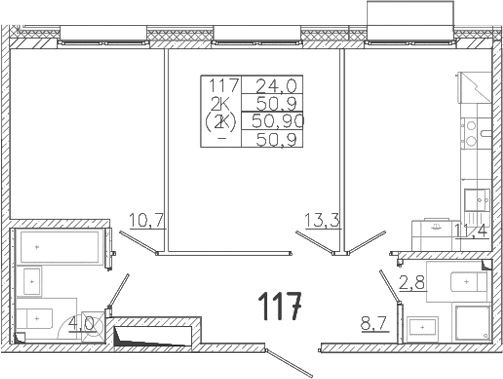 Цена за м2: 332 908₽- Отделка: Подчистовая