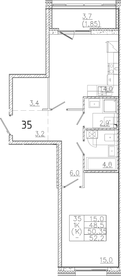 Цена за м2: 343 299₽- Отделка: Подчистовая