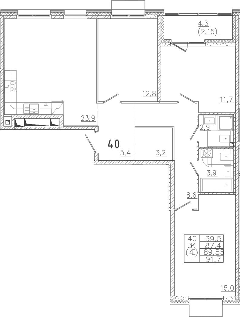 - Комнат: 4Е-к.кв
